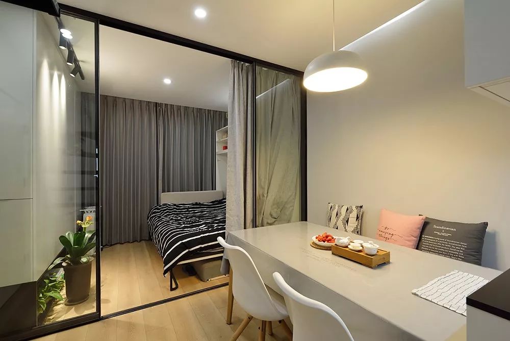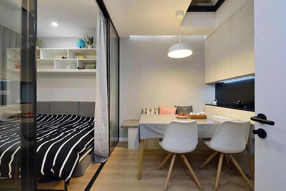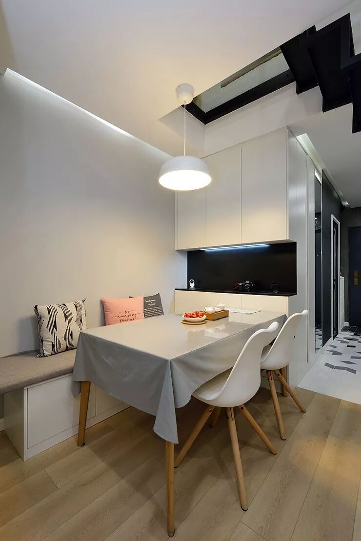 卡座式餐厅设计,可以说是小户型的法宝,外观简洁,却有着越大的空量。