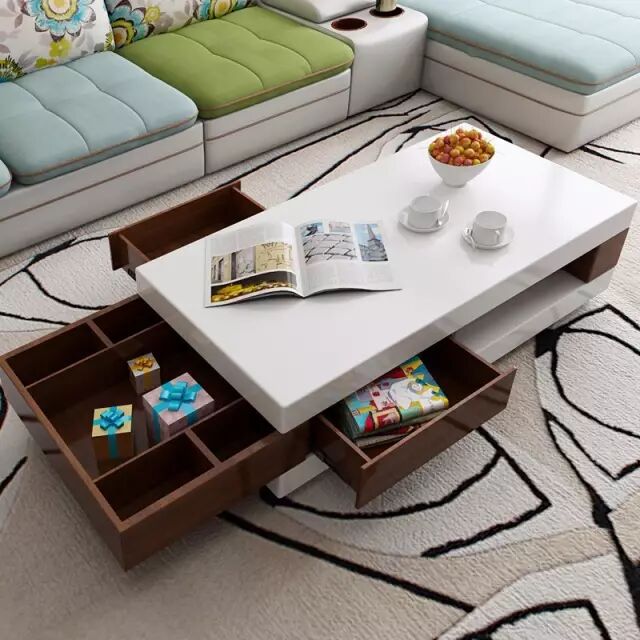 相对于沙发的更换,茶几的选择自由面就会广很多,所以,多功能的茶几不仅可以轻松满足日常会客需求,装饰出自己专属的独特风格,同时抽屉、暗格的有效设计,更能整齐收纳日常的零碎物品,令客厅更加整洁。