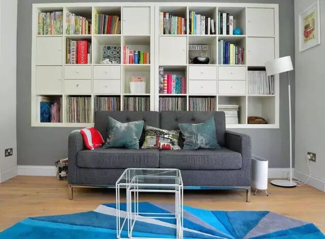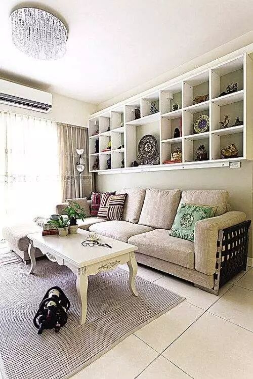 想让眼前清爽点但是对收纳要求也高可以试试将收纳柜放于沙发背景墙上,无论是上挂式收纳还是嵌入式收纳;无论是多层收纳,还是一式收纳,让它们置于脑后吧!