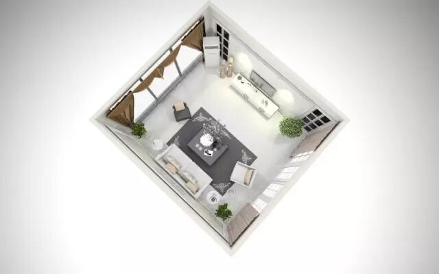 但如果真的如俯视图中那样规划空间,在收纳功能上会有所欠缺,部分业主就喜欢这种简洁的风格,不希望家中过于冗杂繁琐,该怎么办呢?可以试试有收纳功能的沙发、茶几、电视柜(电视柜本身具有收纳功能)。