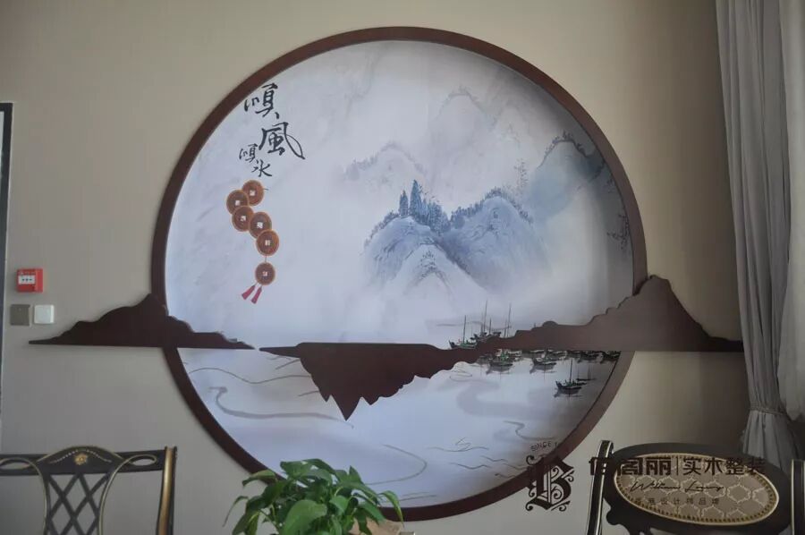 进入展馆大门,一组水墨造型画框吸引了小编。边沿实木打制的造型,远山、近水、船只、倒影,勾勒了一幅小巧别致的山水画,韵味十足。