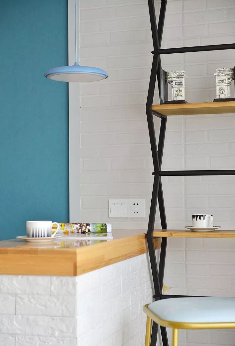网购铁艺装饰架+实木台面的小吧台,偏安一隅,静享好时光。