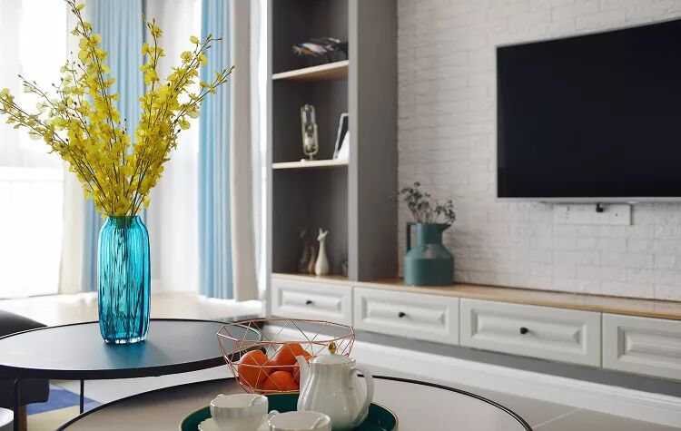 客餐厅最终呈现的实景图与设计方案结构完全一致,软装产品和搭配达到90%相似,大部分家具和饰品来某宝定制和采购。