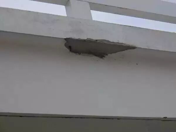 △家中阳台旁边的屋顶被装修工人不小心敲了一个洞,虽然事后用水泥补了一下,但实在是难看。