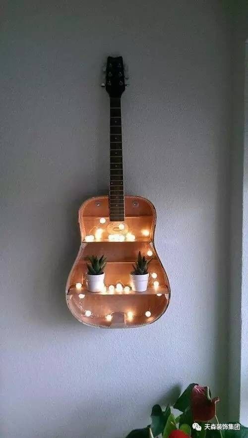 家里闲置的旧吉他,舍不得人的就把它做成墙面装饰吧。生是你的,死也是你的。