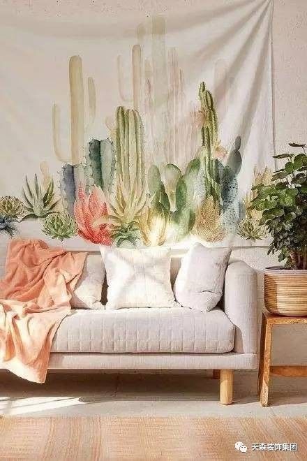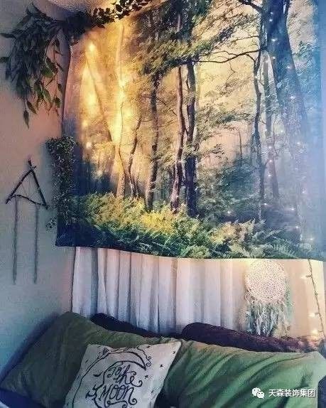 这种偏自然风的挂布也深受大家喜爱,像这种颜色图案都比较大面积的挂布,无疑是房间的焦点,不管你想要什么风格的房间,只需要在这块布上作文章就可以了。