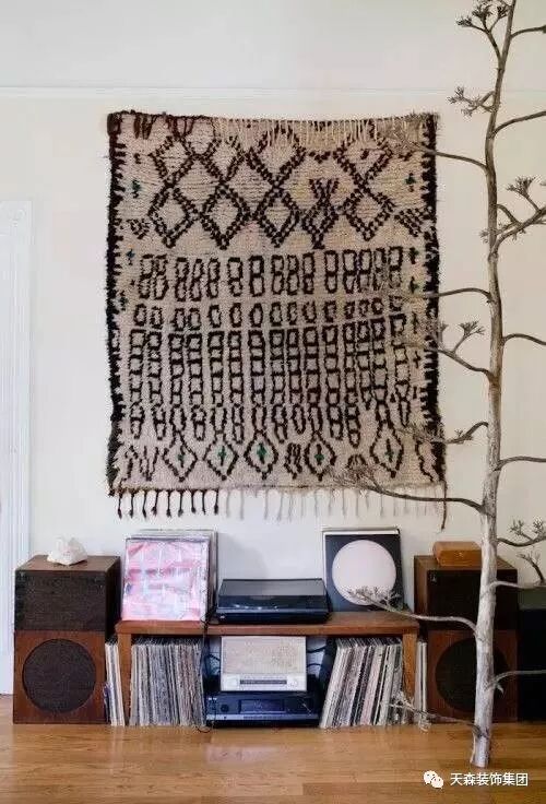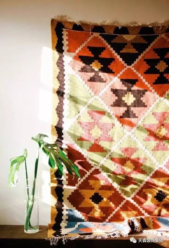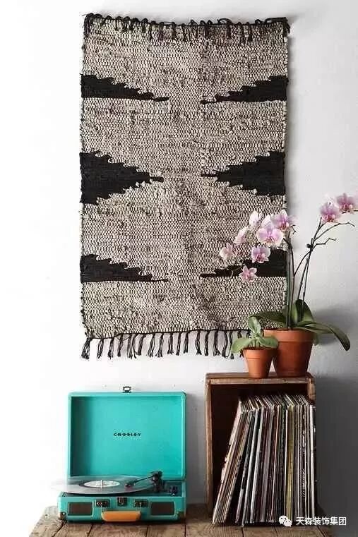 挂毯作为一种墙饰,最初出现在古代欧洲的贵族家庭,编织技术进步的今天,挂毯早就从贵族人家走进寻常百姓家。地毯也可以调剂家中的色彩。