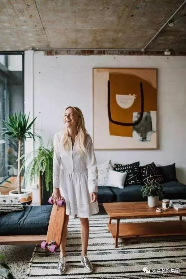 沙发区挂一块布很简洁,不喜欢了还能随时换。