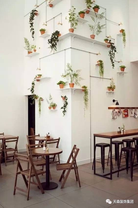 我们看多了一整排的绿植,有时候也需要来点创意。将绿植错落的摆在墙上的支架上,任由枝蔓生长,呈现出最原生态的模样。