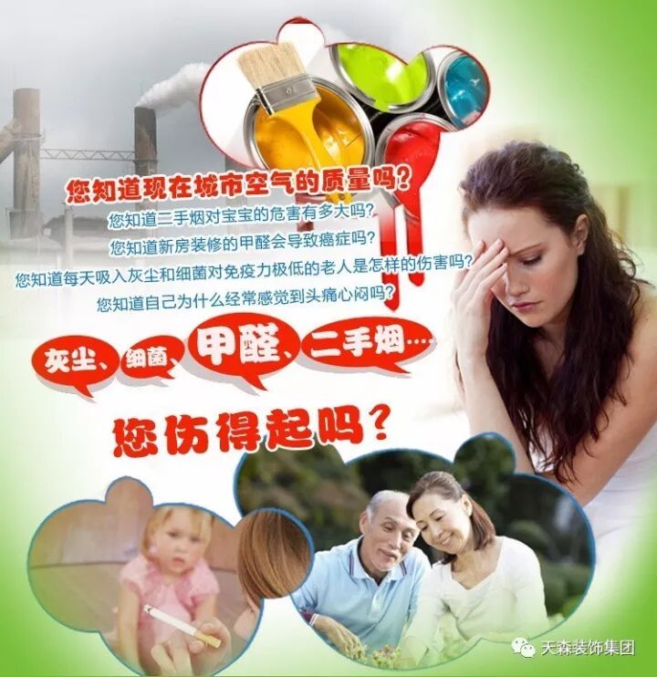 “云南首届负氧离子健康家装节”送的不仅是优惠,更送健康的品质生活。天森负氧离子健康家装必将掀起一番倡导健康、拒绝空气污染的新潮流!爱家人,就对家人负责,装修选择天森装饰,还家人一个健康时尚新生活!