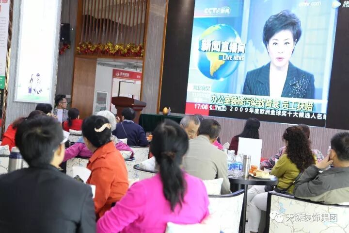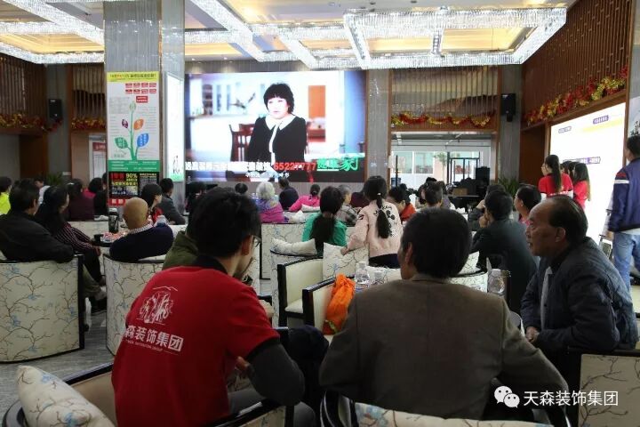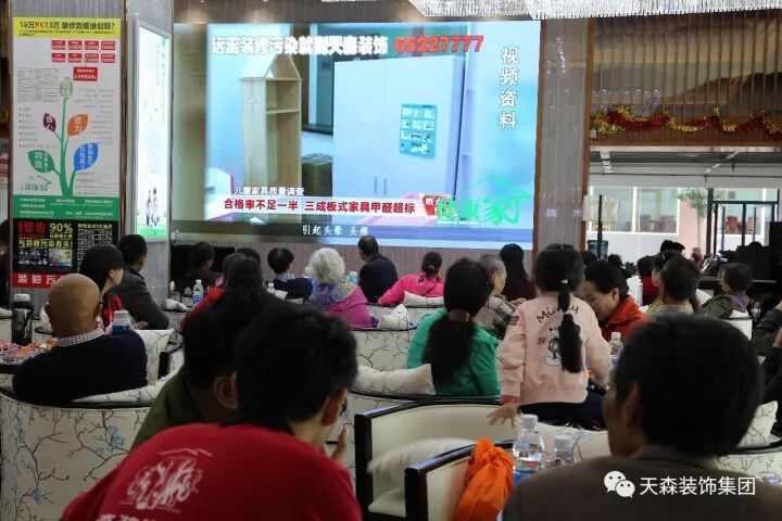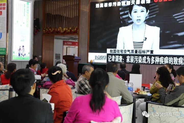 活动当天,天森装饰接待大厅人头攒动,宾客们有序落座,在品尝美味点心的同时观看了中央电视台关于装修污染的系列报道,对装修污染的危害有了全面而系统的认识,同时也认识了天森的事业。我们的健康理念得到了全场嘉宾的赞同。