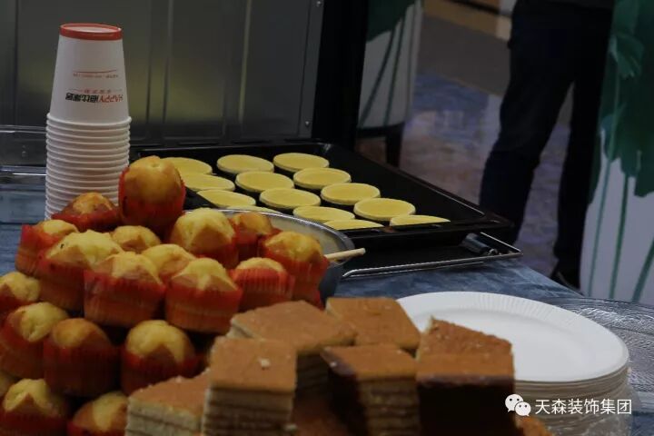 在活动现场,我们的活动优惠活动频频传出喜报:装修减免工程款、软装红包抽奖各项大奖统统被客户带回家。当然除了丰厚的签到礼和高潮迭起的抽奖,我们特别挑选了合作的品牌材料商、银行参与活动。吃着由天森邀请的商家专业烘焙师烤制的糕点、肉品,不少冒着寒气和细雨前来参加活动的宾客们直呼过瘾。