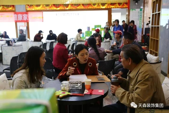 衣服,总要试过才能买,美食,总要尝过味道才知道美味,装修,总要亲眼看到品质才能放心选购!今天奔着健康装修而来的业主让天森装饰又一次的人气爆棚!天森装饰大堂挤满了来自各小区的业主,现场人头攒动,场面火爆异常。在一个个洋溢着笑容的欢乐声中,天森家装节在万众瞩目中开始了。