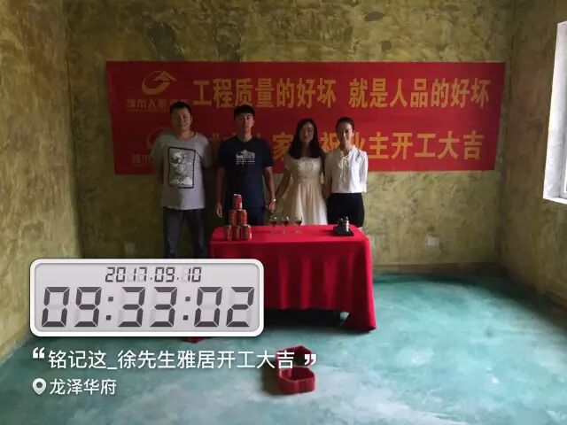 ▶2017年9月10日,龙口城市人家装饰全体员工热烈祝贺宏润花园徐先生开工大吉,感谢您及家人对我们前期工作的肯定与信任,龙口城市人家将为您竭诚服务。