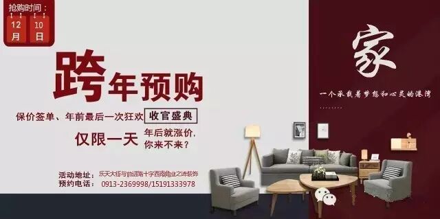 联系电话:0913-2369998 15191333978(可添加微信)地址:乐天大街与前进路十字西南角业之峰装饰