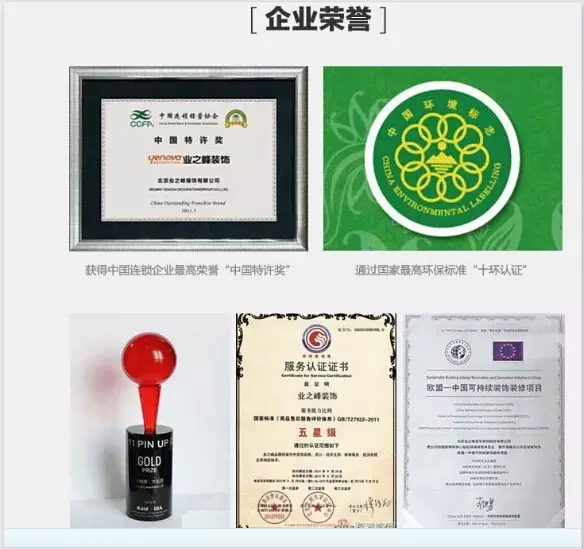 业之峰装饰是中国最大的家装企业之一,中国环保装修的领跑者,在业内创造过多个“第一”。它是最早提出环保装修概念的企业,第一个提出“环保不达标,全额退款”;2011年,业之峰通过了由国家环境保护部授权颁发的“十环认证”,这是我国唯一由政府授权颁布的最高权威环保产品标志;2012年,业之峰又荣获了最高等级标准——五星级服务认证,从而成为家居行业第一家、也是唯一一家通过五星级服务认证的企业。