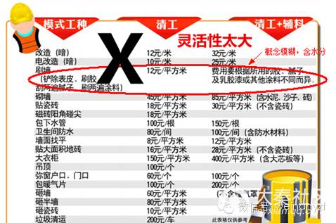 业主频跑市场对主材研究详细,对辅料价格就不清楚了。比如拆除砖墙一项,因本身人工费已经偏高,辅料一项是根本不存在的。