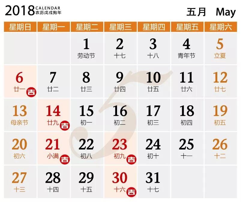 公元2018年05月14日 农历03月(小)29日 星期一 牡牛座 农历戊戌木年 三月小 廿九日
