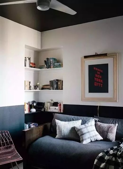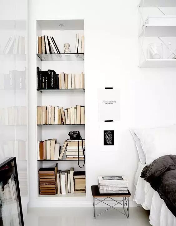 ▲利用墙壁的厚度打造书架,是常见的做法,远看是和墙壁融为一体的装饰。