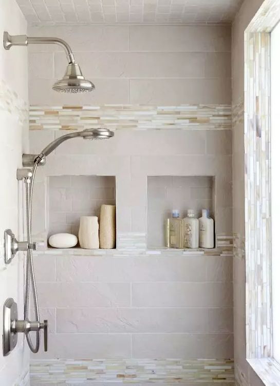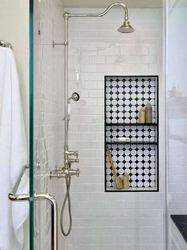 ▲淋浴区旁边也可以用壁龛收纳沐浴用品,不管是高还是低,洗澡的时候拿东西方便最好。