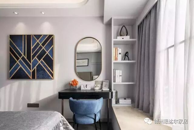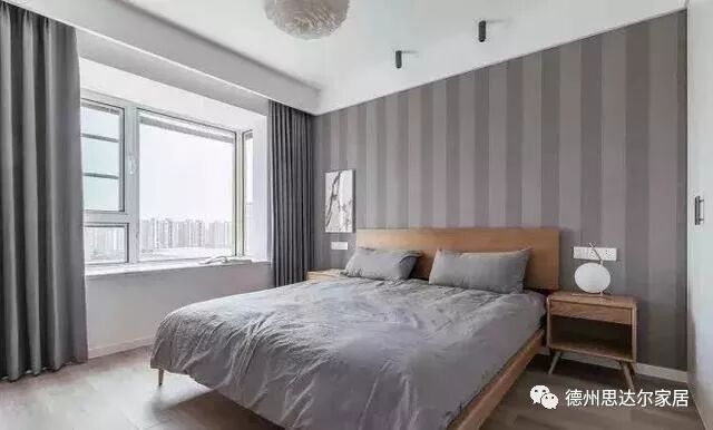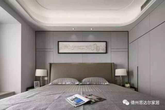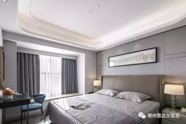 灰色是冷静与沉稳的色彩,将灰色作为卧室的背景色,为主人营造一个理性、便于思考的空间。