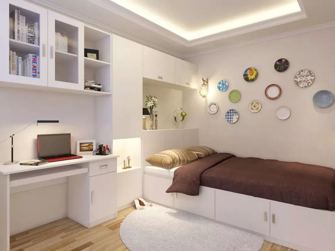 用榻榻米充当床对于小户型来说,是个不错的选择。卧室中的榻榻米,可在一旁设置几个储物柜,放置家中不常用的生活用品,这样便会让整个空间变得干净利索,明亮整洁。