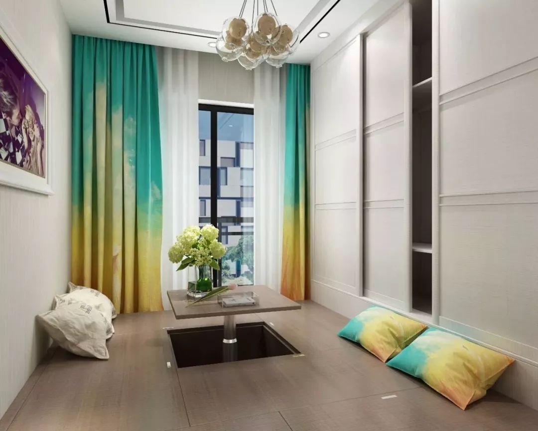 榻榻米其实最简单的配置便是坐垫/蒲团+矮桌。当家中来客时,可临时挪移家具,整个空间瞬间宽阔明亮许多。