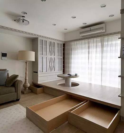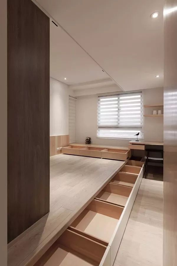 不管是在榻榻米的底部或侧面开几个抽屉,还是将整个榻榻米都作为收纳面积,都要根据家中收纳需求来设计!