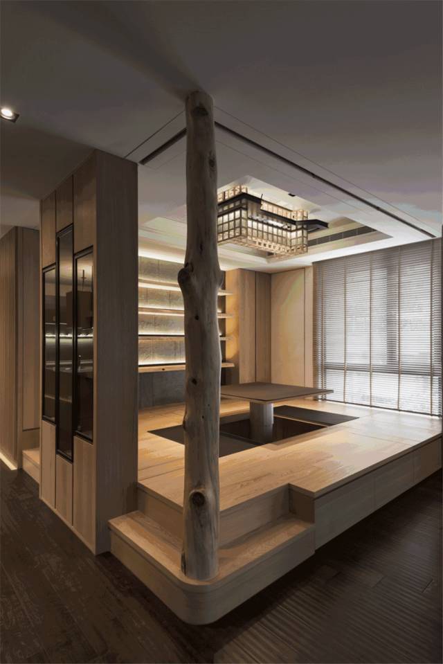 功能最齐全的大概便是自带升降桌的榻榻米了。升降桌分为电动或者气压,适合在午后沏上一杯茶,和三五好友聊聊天,也可以约上几个棋友博弈两局。带有升降台的榻榻米特别适合家中老人修身养性或日常解闷。