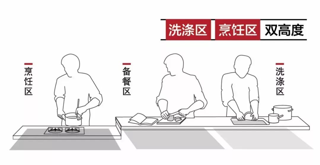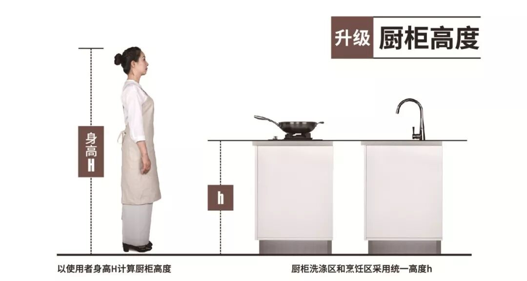在一般的家庭中,基本做饭的都是主妇,而主妇的身高是确定的;这个时候肯定是要根据主妇的身材来定制厨柜的高度,所以一般的厨柜定制公司,会根据使用者的身高来设计厨柜的高度,不过在日常使用过程中,洗菜与炒菜时候的姿势是不一样的,如果洗菜盆与灶台高度一致的话,这样还是会有不适的情况。