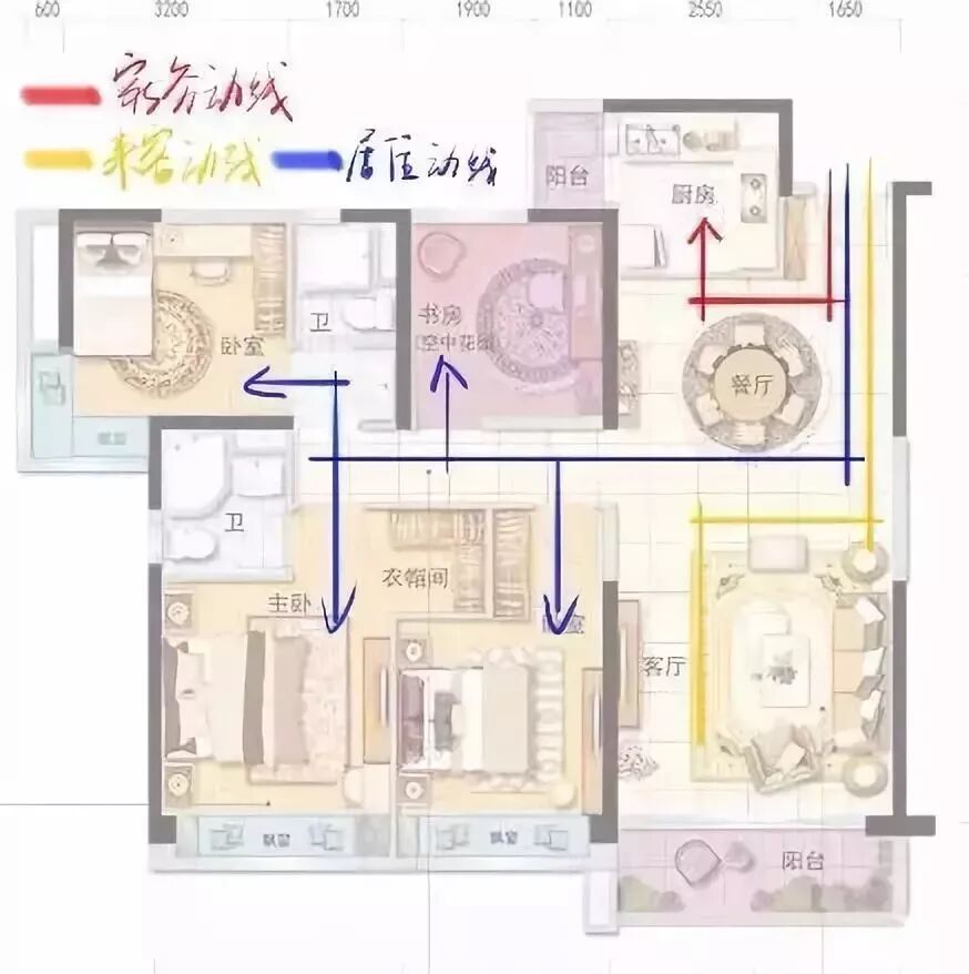 关于动线,我们之前也有介绍过整体室内设计的动线布置原则,在于家务动线而言,肯定都是越短越好的。