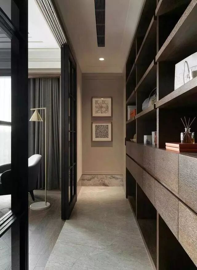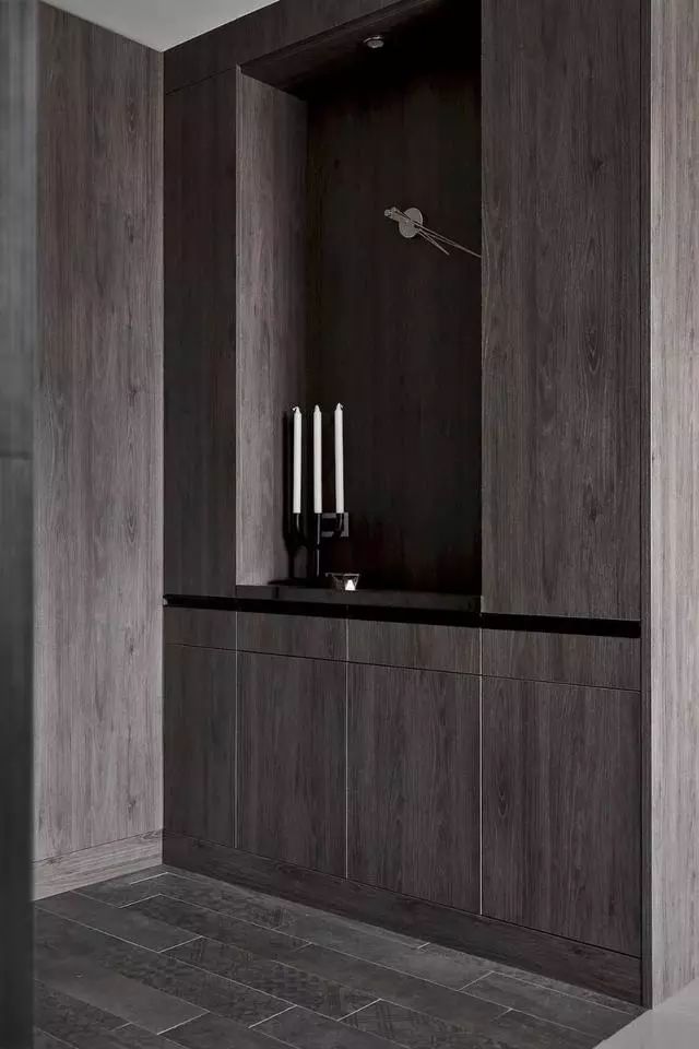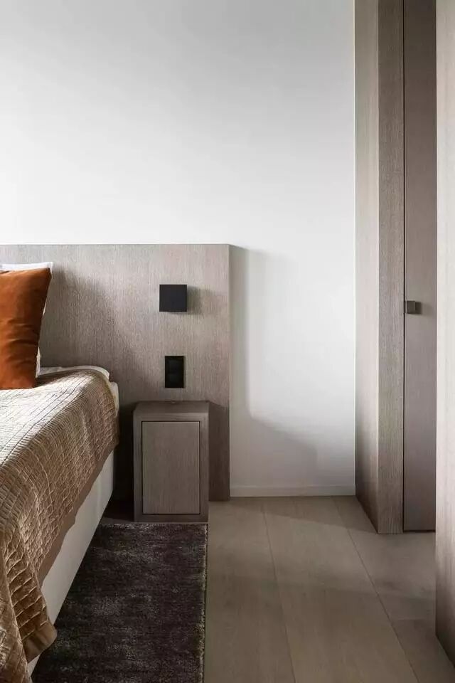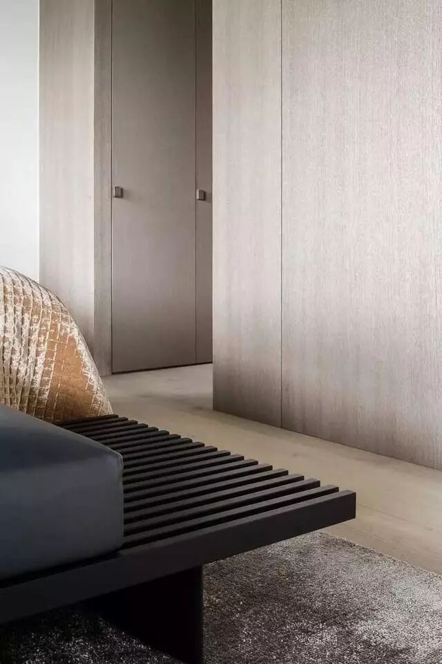 较深色踢脚线会有拉低层高的效果,当选用深色系踢脚线时,可以从统一性出发,选择和门框、地面或墙面一样的颜色。弱化踢脚线的存在,并且拓展了地面的空间。