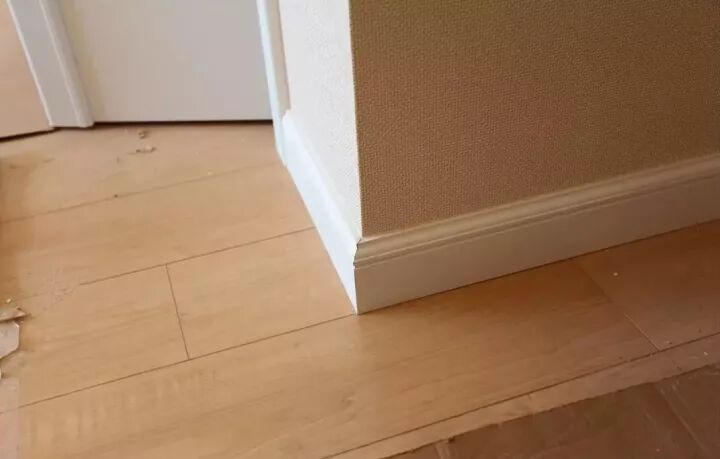 可沿墙角凿缝,铺设地板时将地板塞进墙角。也可以用饰面板增厚壁面以压住地面缝隙,还可以在缝隙加入灯光,增强空间层次感,但护墙板价格很高。
