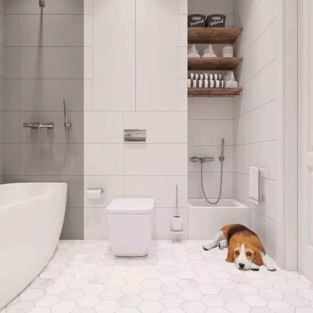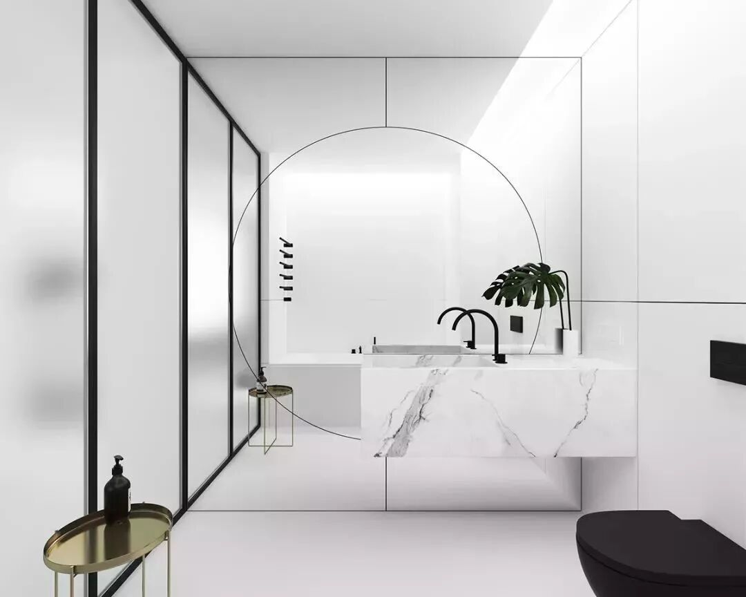 再者,利用纯白色等可以提亮的瓷砖,加上通透的玻璃隔断设计,都能很好地解决这一问题,从视觉上改善光线不足的缺点。