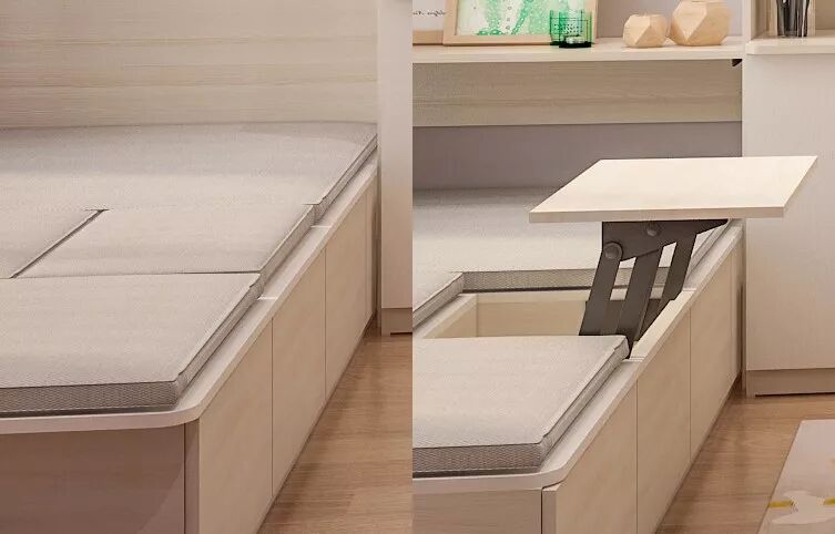 陈小姐在认真考虑了房间的使用情况后,配置了三个多功能家具。