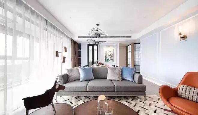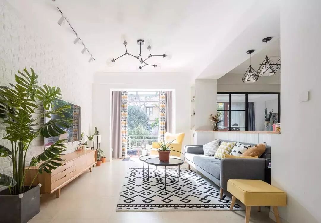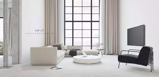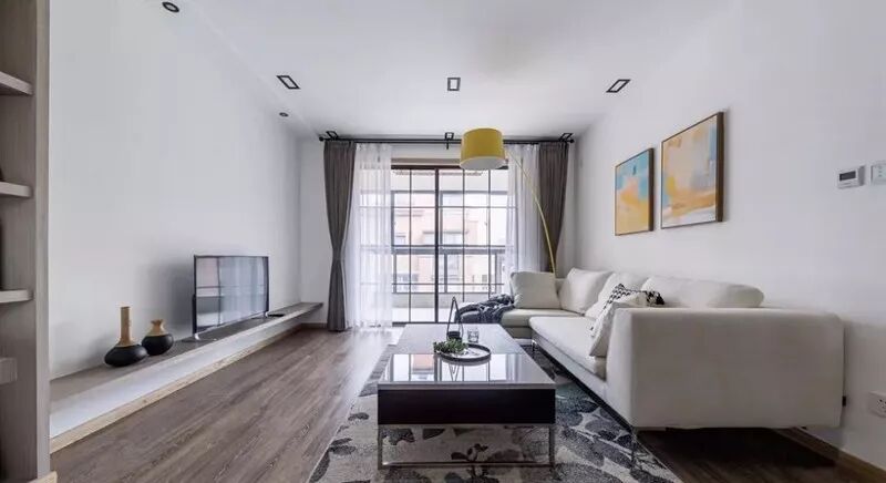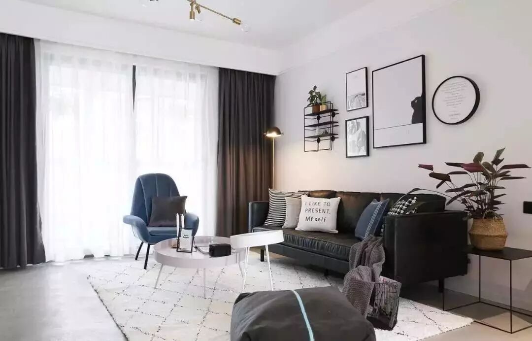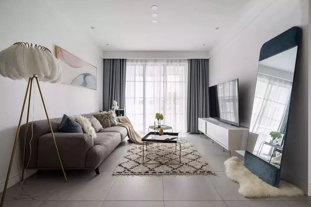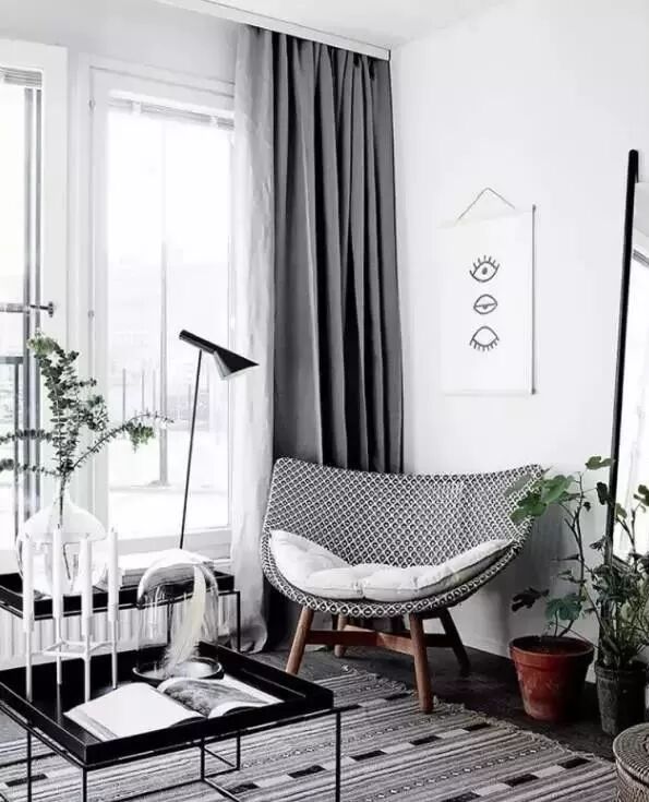 起点高、上及天花板,下及地板的窗帘,能自带延伸效果,制造一种更大的空间感。如果窗帘杆也选用浅色系的细杆,空间看上去就更清爽了。