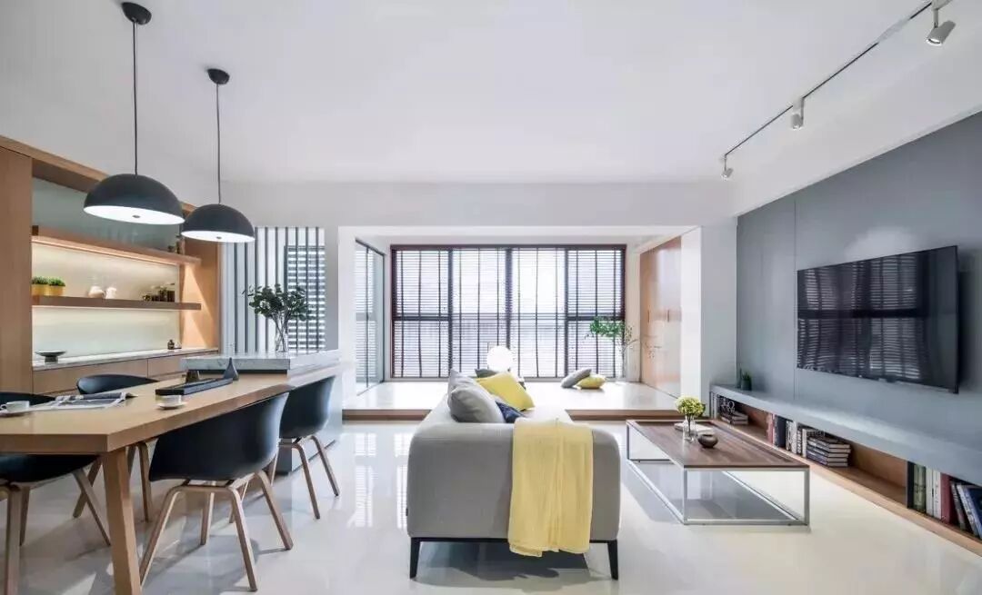 如果不能接受全开放,半开放式格局也能达到空间的交错、融合与延伸的效果。