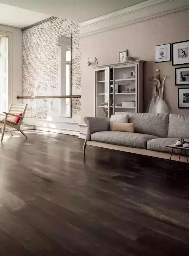 如果你实在喜欢木地板的那种视觉效果,不妨试试木纹砖:表面具有天然木材逼真纹理图案的瓷砖,自身使用寿命长、耐磨度高,无需周期性地打蜡保养。