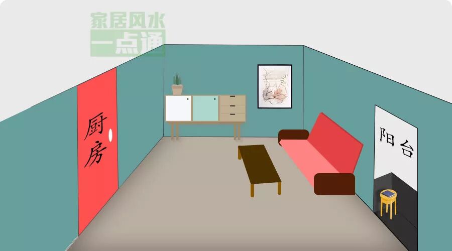 厨房在风水上为食禄,是住宅的财库所在地,宜藏不宜露。而阳台是现代住宅中最开放最流动的场所,厨房门与阳台相对的布局会导致家中财库外漏,容易受到外部煞气所冲,导致财源不稳,多损多耗,可以在厨房门下安放【兴道秘制开光十帝尺】化煞招财。