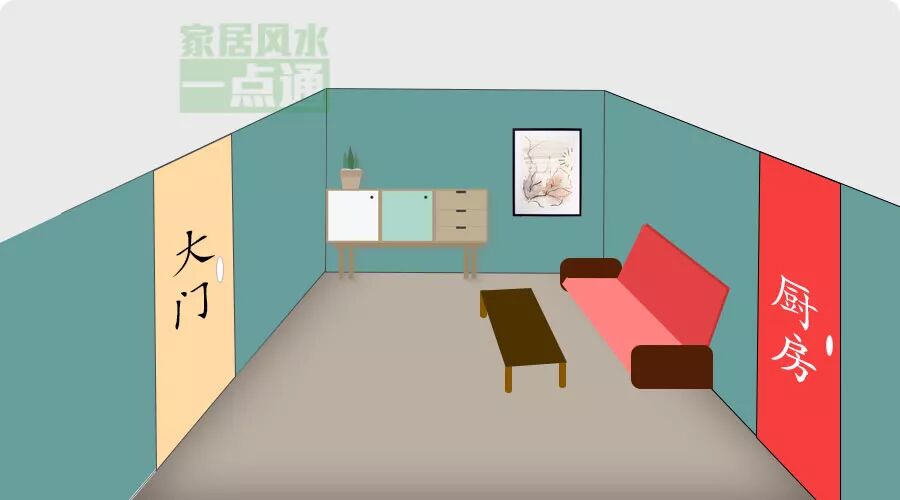 厨房是一家人的口腹之源,是住宅内动火较多的地方,火气较重。如果进入大门后直接见到厨房,就会招来过多的火气,使得家人脾气差,争吵不断,还会让事业不稳,运势不定。最好在大门处设置玄关或者放一面屏风来化解,同时在厨房门下安放【兴道秘制开光十帝尺】来稳定宅内气场。