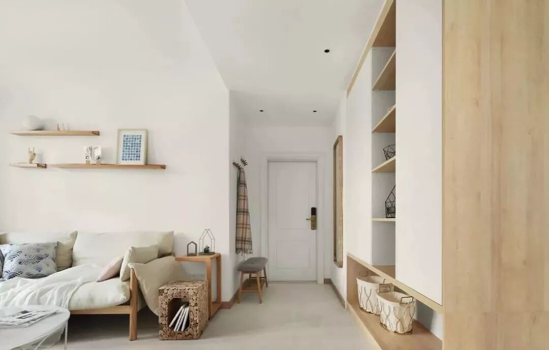 房价那么贵少用1平米浪费好几万,收纳除了一些固定的收纳柜,借用过道、墙角、楼梯间等,布置内嵌柜、简易收纳架什么不在话下,轻松变大5㎡。