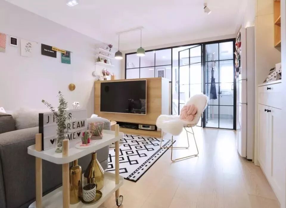 不能扩宽窗户引入光线就内部解决问题,先 大面积使用浅色 ,形成视觉上的扩张感,然后增加光源。