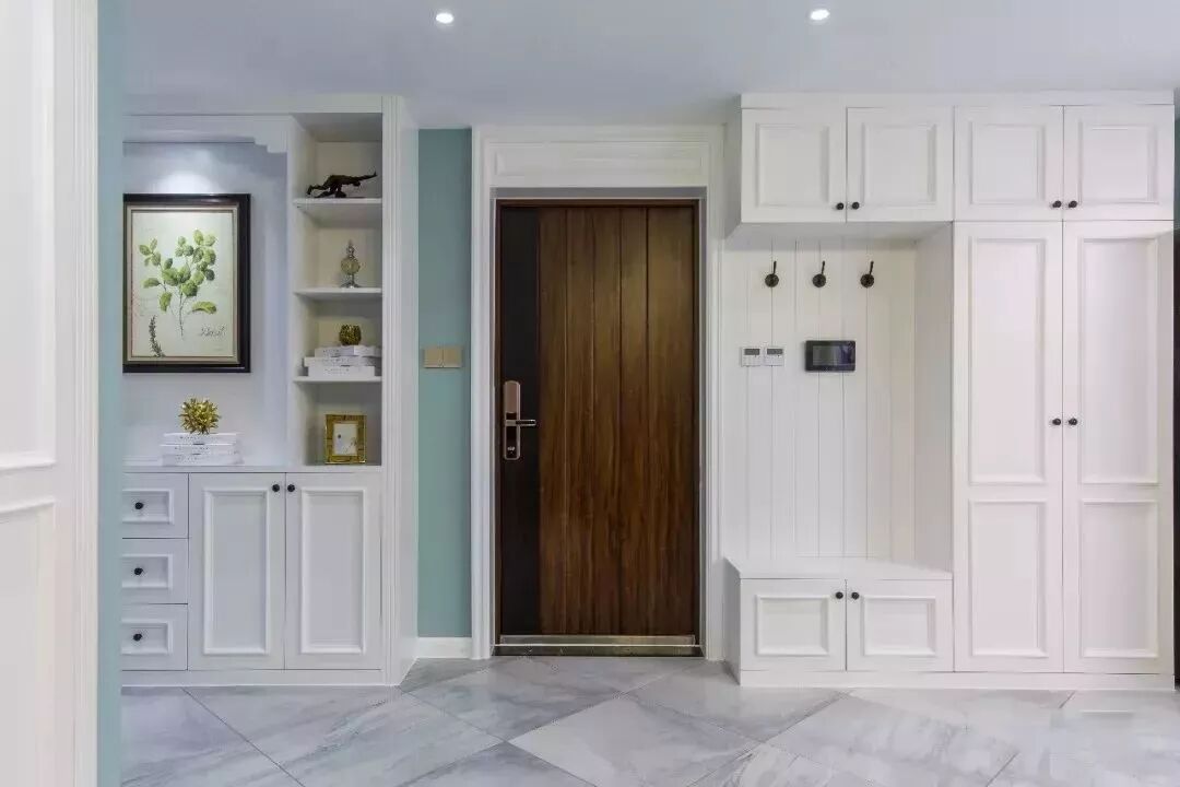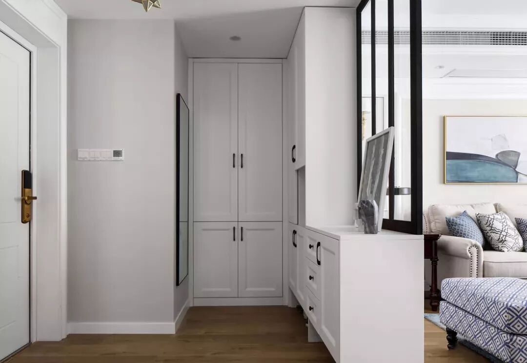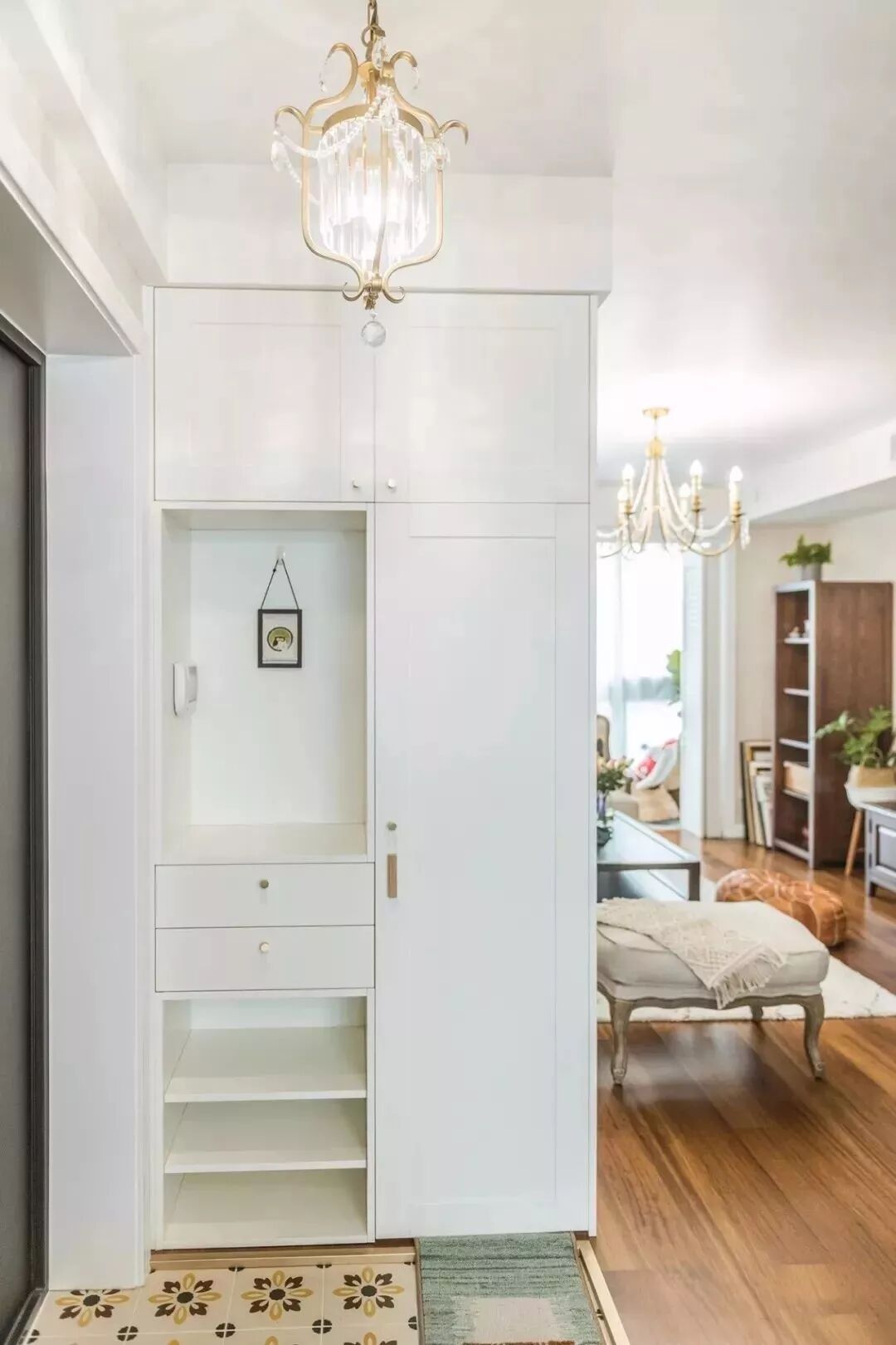 进门是餐厅/客厅且墙体留空, 一定要先打柜子 ,安置一家人的鞋帽包包,进出门也会变得井然有序,该在哪里拿什么心里都有数。