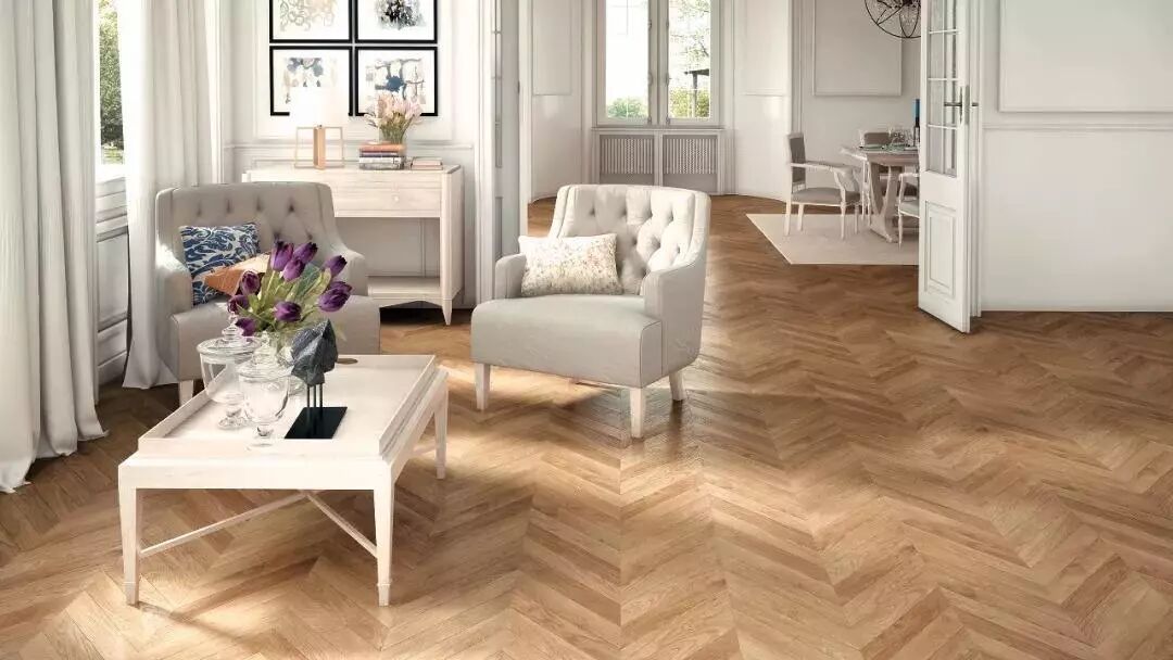 人字形与鱼骨形相似,但成本却要更低些,是欧洲传统家庭比较喜欢的一种风格,如今也越来越常见了。