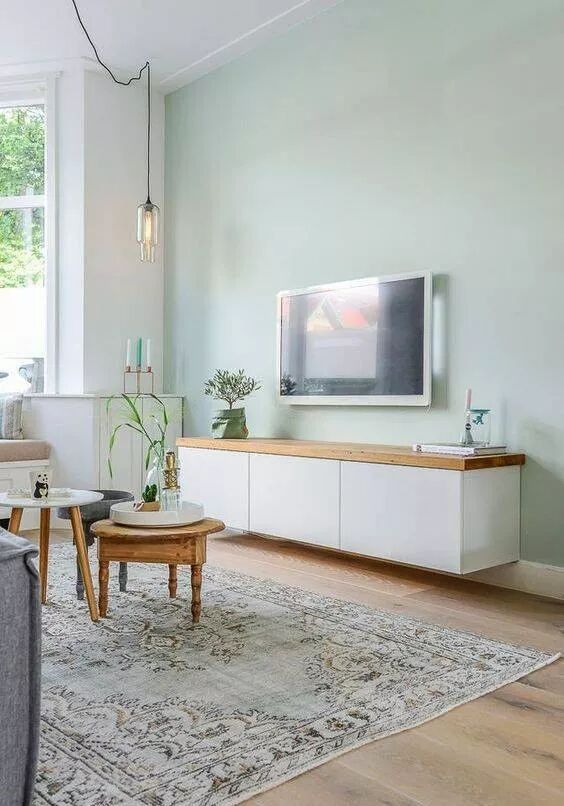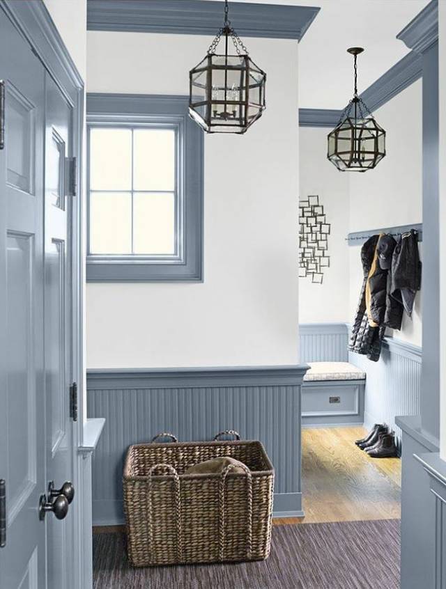 天蓝色的墙裙可以把视线断开,视觉上更有层次,也把居住者的目光向下转移,层高问题便会被淡化。