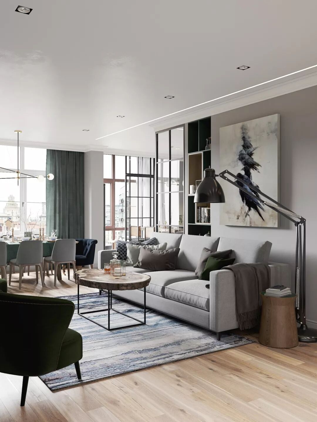 把高件家具、落地灯或是高大的盆景放在角落里,它们指引着你的视线向上,也让空间看起来更大。