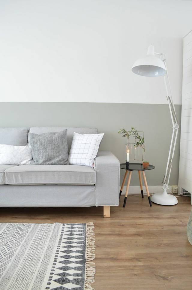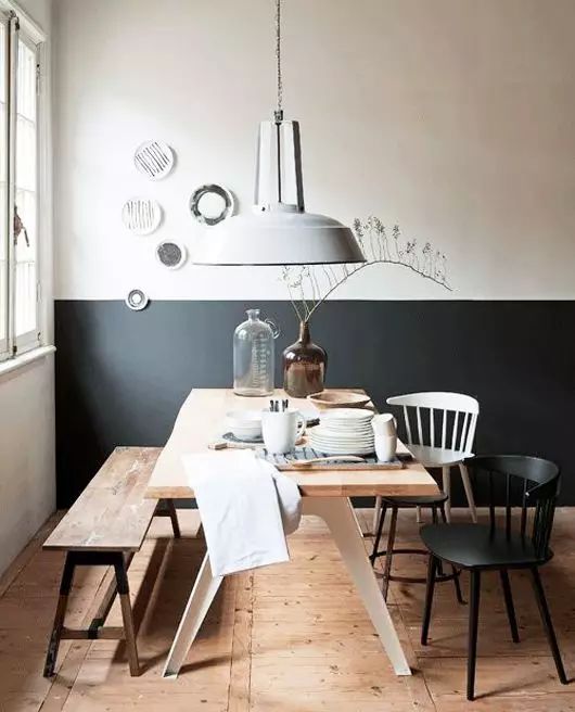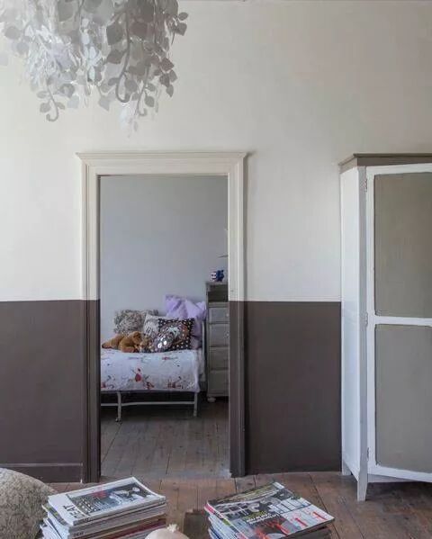 将墙的上半部分保留白色,下半部分刷成深色,利用层次感拉伸视觉效果。