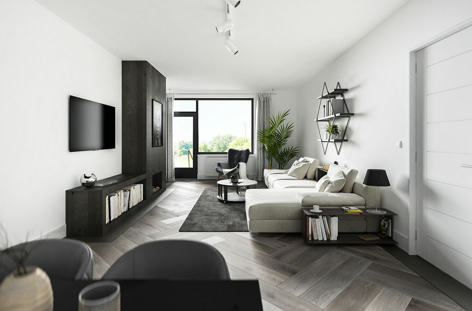 对于层高不高的房子,可以利用墙面来营造高挑的视觉感受,可以利用高踢脚线设计、或者墙裙设计,让墙分为上下两部分,上半部分用浅色,下半部分为深色,在视觉上也能达到拉高墙面的作用。