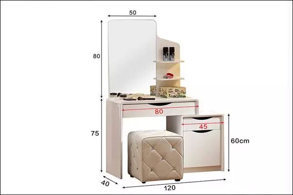现在很少家庭会有梳妆台,一般都会规划在卫浴间的镜柜里,当然如果有的话,最佳尺寸如下: