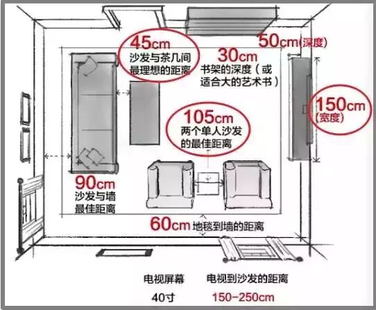 对于可以的尺寸布局,无非就是沙发,茶几,电视柜,电视之间的距离合理把控: